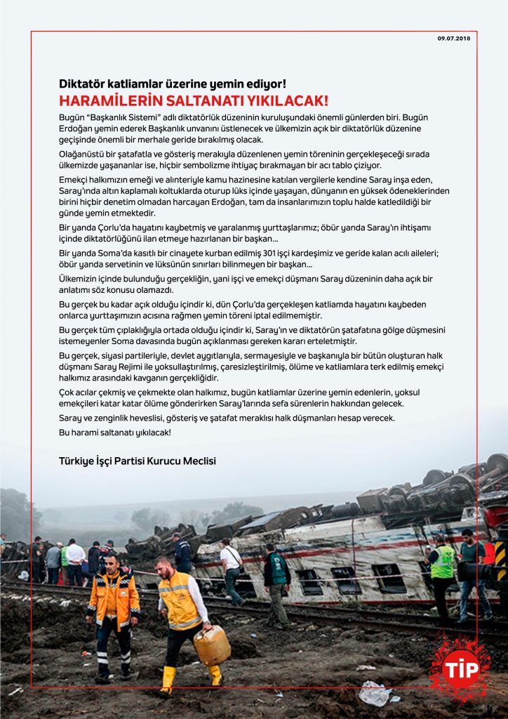 TİP 3. Olağanüstü Kongresi Duyurusu TİP 3. Olağanüstü Kongresi Duyurusu 03 Şubat 2026 Kürt Halkının ve Ezilen Tüm Ortadoğu Halklarının Yanındayız Kürt Halkının ve Ezilen Tüm Ortadoğu Halklarının Yanındayız 20 Ocak 2026 Çocukları Korumak Devletin Görevidir! Çocukları Korumak Devletin Görevidir! 20 Ocak 2026 ABD Venezuela’dan Elini Çek! ABD Venezuela’dan Elini Çek! 04 Ocak 2026 Barış, Adalet ve Özgürlük Mücadelesinden Vazgeçmeyeceğiz. Barış, Adalet ve Özgürlük Mücadelesinden Vazgeçmeyeceğiz. 21 Kasım 2025 Demokrasi ve Barış İçin Buluşuyoruz, Mücadelenin Olanaklarını Konuşuyoruz Çalıştayı Sonuç Metni Demokrasi ve Barış İçin Buluşuyoruz, Mücadelenin Olanaklarını Konuşuyoruz Çalıştayı Sonuç Metni 03 Kasım 2025 Susuzluğun Sebebi Halk Değil, Sömürü Düzenidir! Susuzluğun Sebebi Halk Değil, Sömürü Düzenidir! 09 Eylül 2025 Zeytine, Ormana, Meraya Maden İçin Saldırı Önergesine Hayır Zeytine, Ormana, Meraya Maden İçin Saldırı Önergesine Hayır 18 Haziran 2025 Barışın Yanında Saray’ın Karşısındayız! Barışın Yanında Saray’ın Karşısındayız! 12 Mayıs 2025 Halkların Kardeşliğinde ve Barışta İnat Ediyoruz Halkların Kardeşliğinde ve Barışta İnat Ediyoruz 24 Nisan 2025