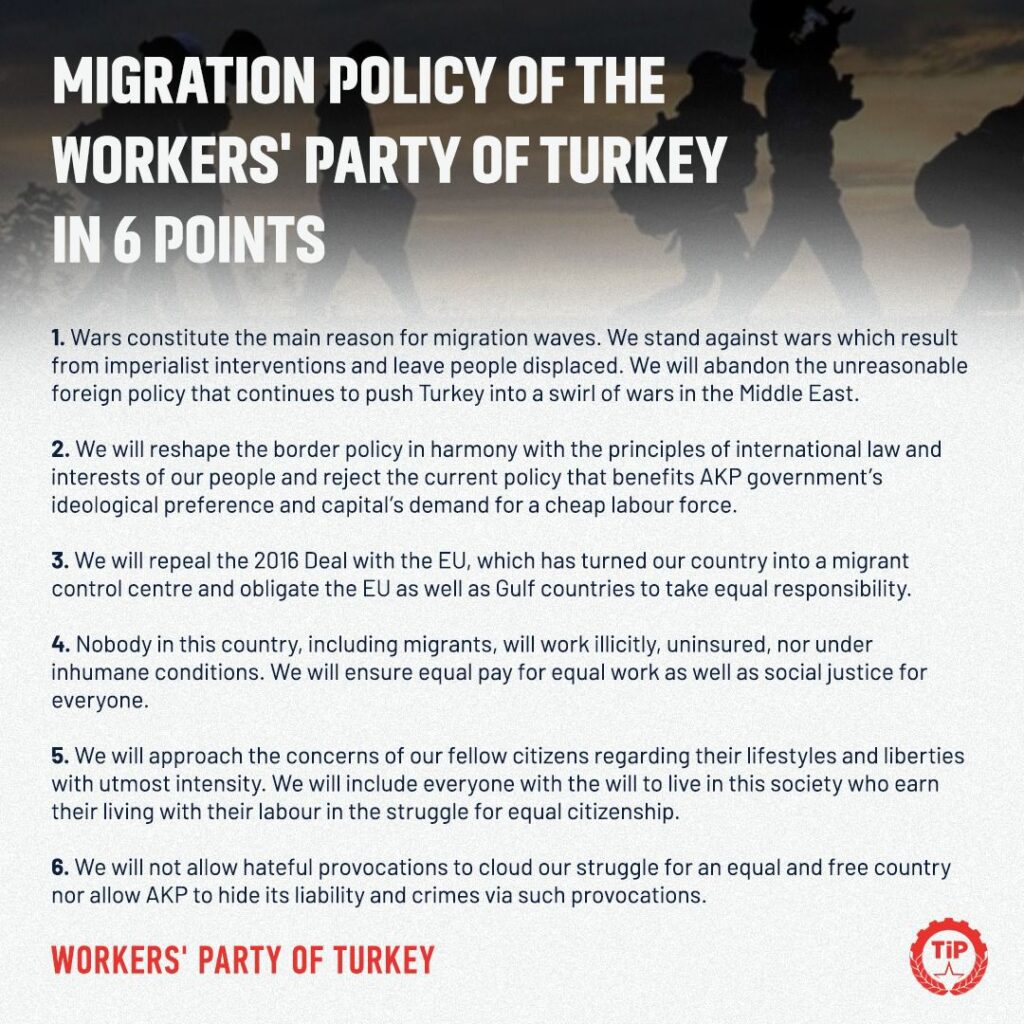 TİP defends the protection of individuals who have a fear for their life or are subjected to discrimination in their countries according to the UN principles. However, capitalist countries, especially the US and those in the EU, break international laws by limiting the labour migration and pushing refugees back away from their borders. Claiming that Turkey should have an “open-door” policy is not realistic in these unequal and unfair circumstances. We need to establish a border and migration policy that benefits not the government’s ideological choices but the public interests and safety as well as the refugee rights.
